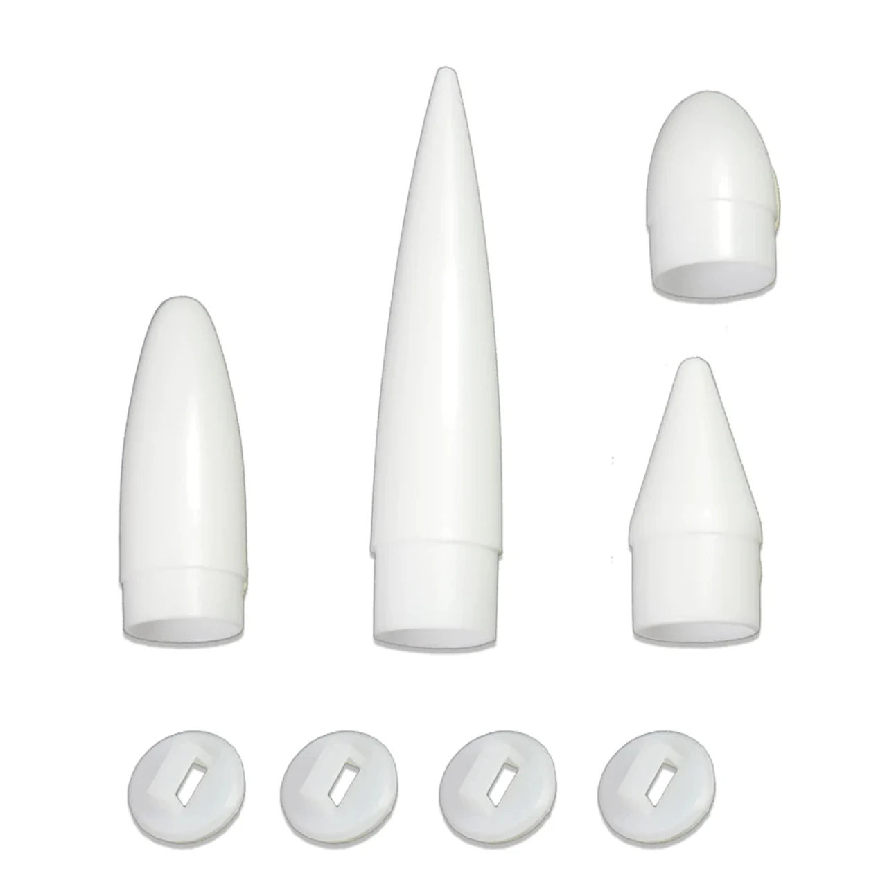 Each package of nose cones contains four nose cones for use with the BT-20 body tubes. Includes four nose cone pins for shock cord and shroud line attachments.