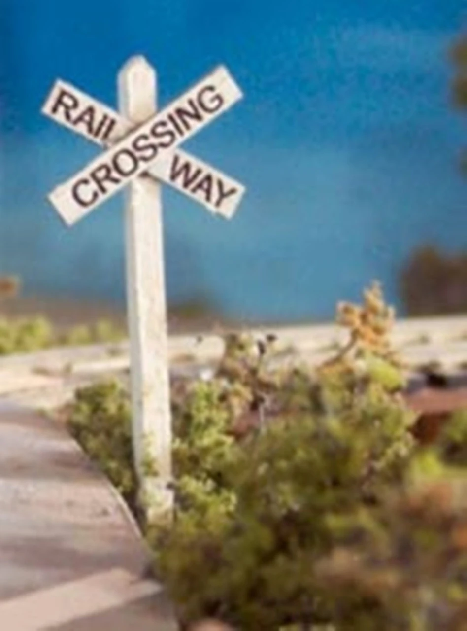 You want to add a touch of realism to your layout? Add some details. Transition Cross Bucks Set of 5 Used from the first part of the 1960’s this cross buck would be at an angle of 60 degrees to the post. This started to change by the first part of the 1970’s to 45 degrees to the post. Includes jig for easy assembly