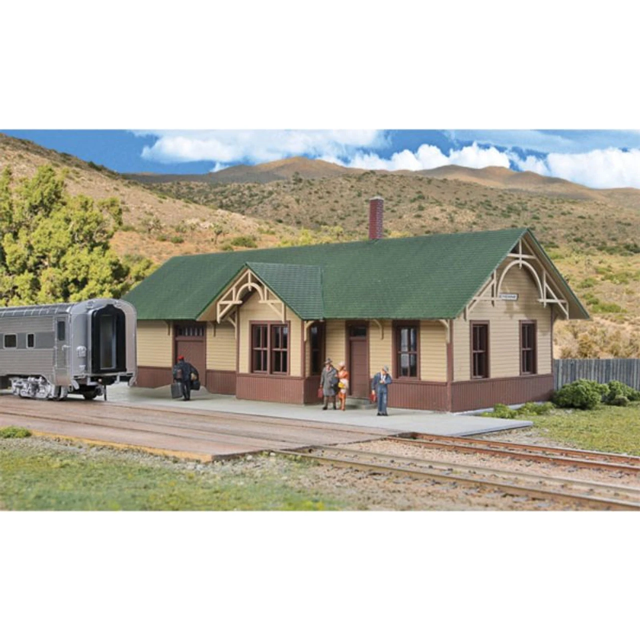 Based on a typical wooden train station, the Walthers Cornerstone HO Scale Union Pacific-Style Depot looks at home on steam and diesel-era layouts. This classic combination train station features wood walls with wainscoting, an operator’s bay, baggage room doors and two different styles of eave brackets and trim plus printed station name signs. Parts come molded in appropriate colors and clear window glazing. Although the Union Pacific-Style Depot is based on a UP design, very similar stations were used by railroads from coast to coast. Use the Union Pacific-Style Depot among other Cornerstone HO Scale railroad buildings. Classic Union Pacific design Similar stations used by many North American railroads Combination passenger and freight station Perfect for larger towns Kit includes eastern and western-style eave brackets and trim Includes realistic printed signs Easy-to-build plastic kit Molded in appropriate colors plus clear glazing The Union Pacific-Style Depot measures: 11-3/4 x 5-5/8 x 4″ 29.8 x 14.2 x 10.1cm